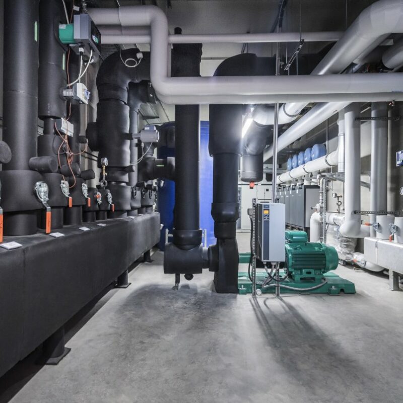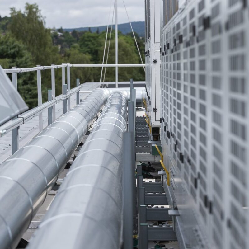 Testzentrum für Schaltschränke für Mittelspannungsübertragung, elektrisch benötigte Leistung von ca. 4 MW, benötige Kühlleistung von ca. 2,1 MW, Einbringung der Kühlleistung über Laborkühlgeräte inklusive Befeuchtung und Einbringung über Doppelbodensystem.
